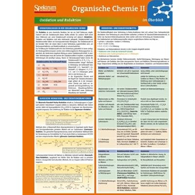 From the Back Cover Bachelorwissen im Ìberblick † †œ damit der Einstieg klappt! Bachelor-Studierende müssen sich schon in den ersten Semestern in viele Lehrmodule einarbeiten und Prüfungen ablegen. Die neuen handlichen Lerntafeln im Ìberblick† Š“ bieten dabei eine großartige Orientierungshilfe - indem sie: alle GrundlagenfÁ¡cher der Chemie behandeln die essenziellen chemische Stichwörter und Fachbegriffe zusammenfassen gesichertes Lehrwissen bereitstellen Vorlesungsskripte ergÁ¡nzen und vor den Prüfungen als Repetitorien verwendet werden können. Die Tafeln bestehen jeweils aus 6 zusammengeklappten Seiten - die sich mittels einer Lochleiste abheftet lassen. Die Laminierung macht sie biegsam und widerstandsfÁ¡hig - sodass sie überall hin mitgenommen werden können und zur schnellen Wiederholung des Lernstoffes zur Verfügung stehen. Die Lerntafel Organische Chemie II im Ìberblick† Š“ beschreibt die Grundbegriffe zur Oxidation und Reduktion - zu den Carbonylverbindungen - den pericyclische Reaktionen und Umlagerungen sowie zu den Naturstoffen. Read more